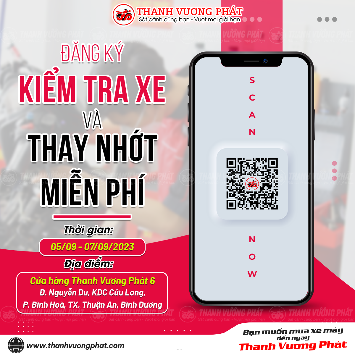 Đăng ký Kiểm tra xe và Thay nhớt miễn phí tại Showroom Thanh Vương Phát 06 - Thuận An
