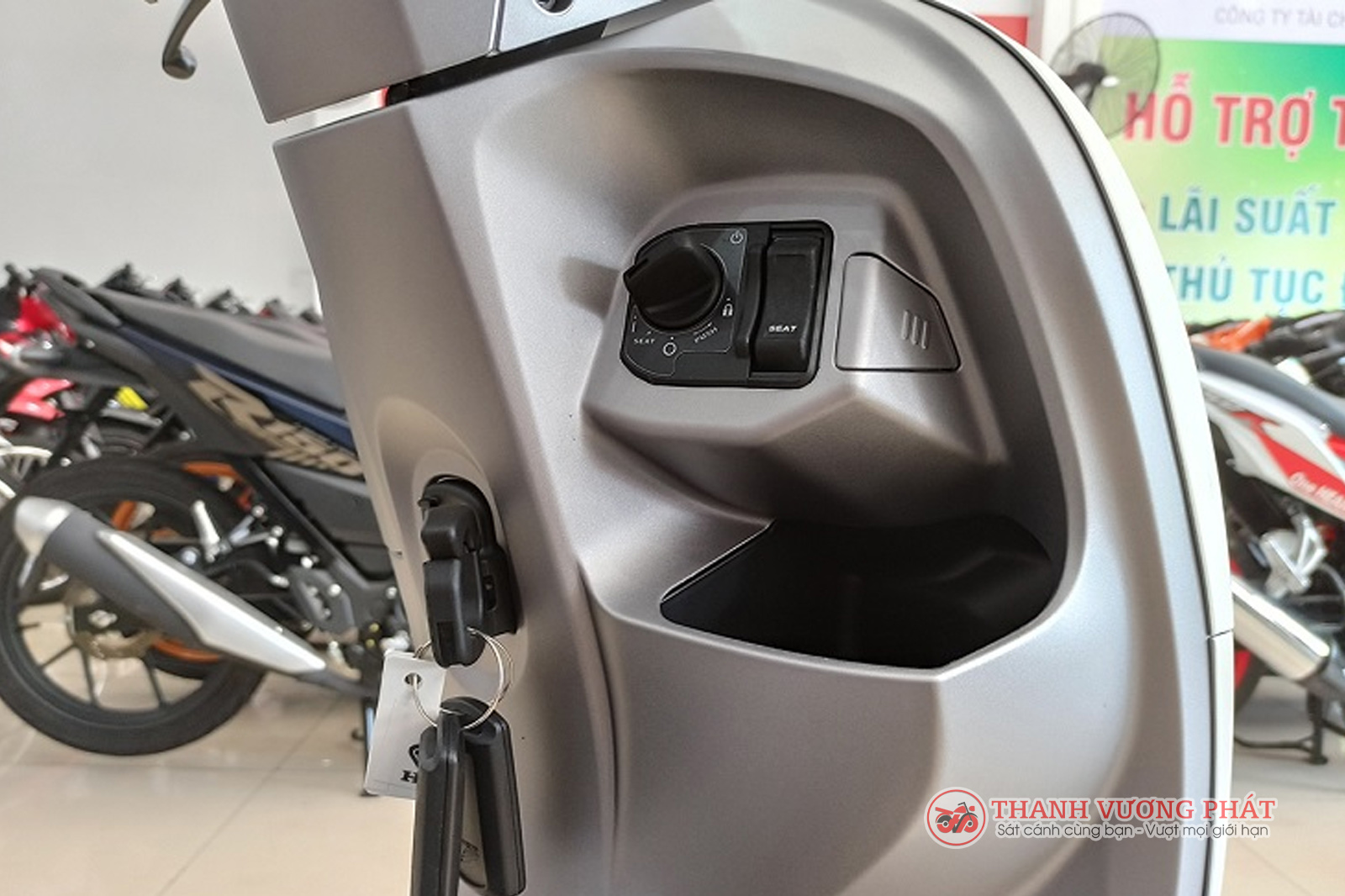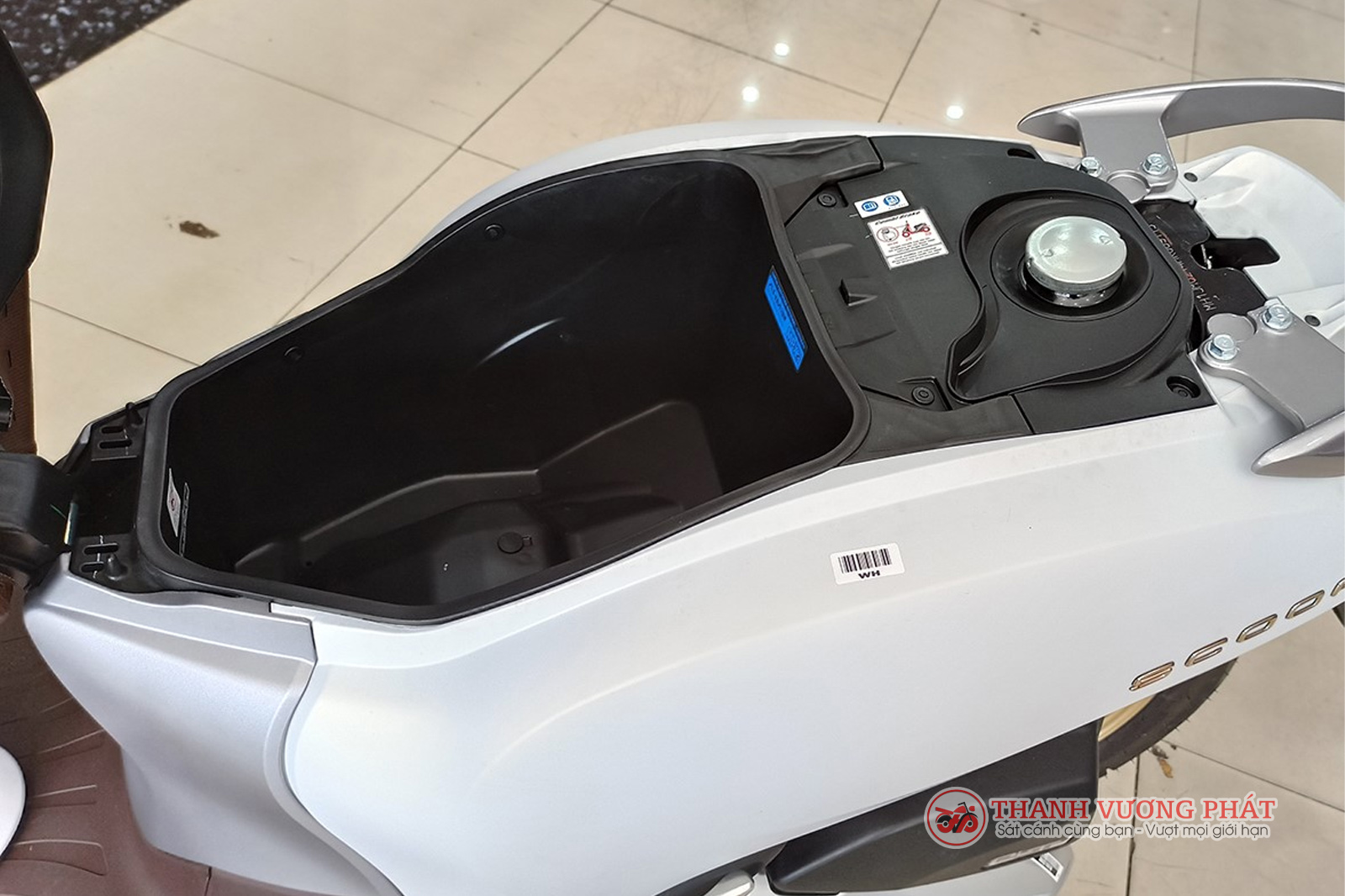 Cốp Honda Scoopy rộng và thoải mái khi có thể chứa trọn 1 mũ bảo hiểm 3/4 kèm một số đồ vật nhỏ khác.