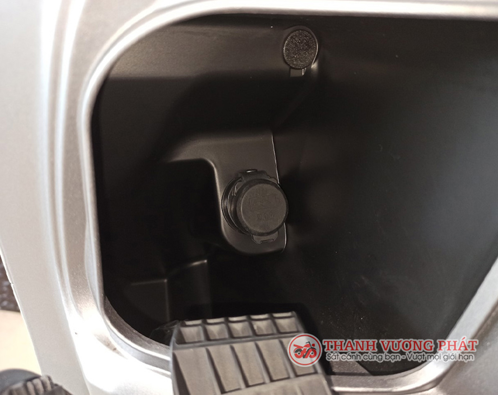 Đặc biệt, Honda Scoopy có trang bị cổng sạc tích hợp 12V 1A ở phần đầu xe. Vì vậy, rất thuận tiện cho việc sạc pin điện thoại và một số thiết bị điện tử hữu ích khác.