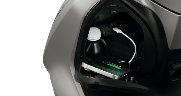 Với dung tích lớn & sâu cùng lẫy đóng/mở tiện lợi, hộc đựng đồ phía trước nay để vừa chai nước 500 mil và các đồ dùng thiết yếu khác. Cổng sạc USB loại C* tiện dụng cho phép sạc pin điện thoại khi cần.