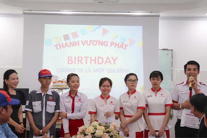 Tại Thanh Vương Phát không có gì ngoài sự gắn chặt, đoàn kết bởi vì chính điều đó sẽ xây dựng được cốt văn hóa doanh nghiệp tốt đẹp cho công ty. Những buổi tiệc sinh nhật định kì hàng tháng sẽ làm cho đội ngũ nhân viên cảm thấy được quan tâm, sẻ chia và quan trọng hơn hết gắn bó mọi người gần nhau hơn.