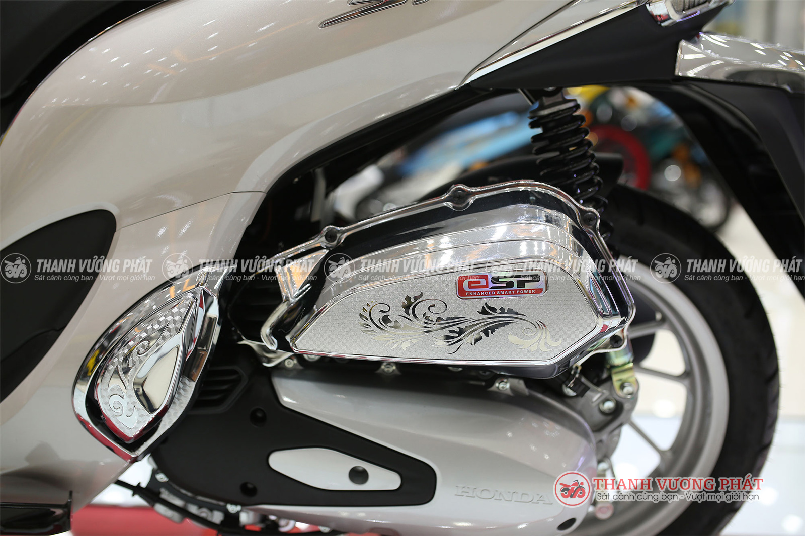 Logo "Sh" 3D nổi trên thân xe có hình dáng tựa như logo của dòng xe SH đẳng cấp, tiếp nối là logo "mode" với đường nét tinh xảo, thiết kế bo tròn thể hiện sự mềm mại, thanh lịch và nữ tính.