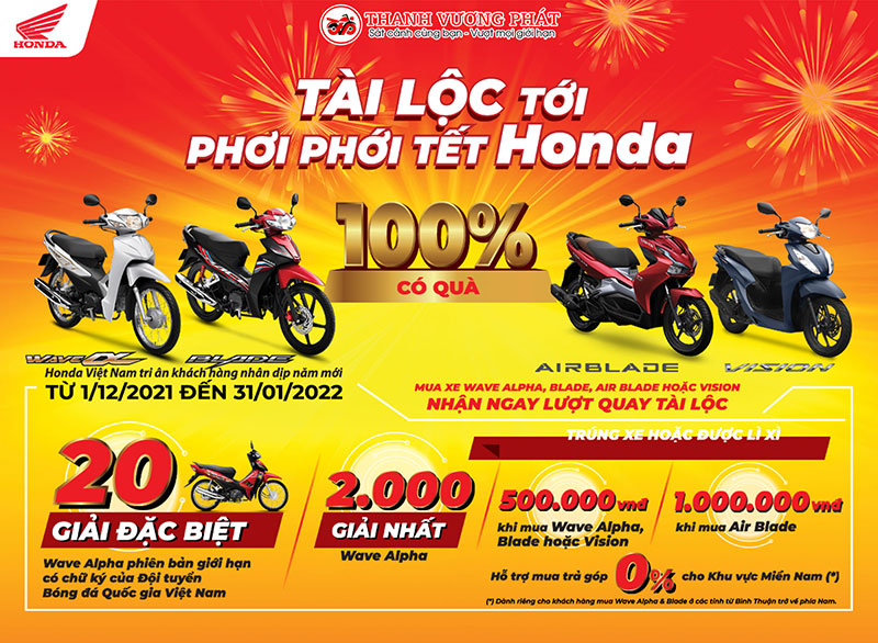 VUI ĐÓN XUÂN SANG RINH NGAY QUÀ TẾT VỚI CHƯƠNG TRÌNH KHUYẾN MÃI "TÀI LỘC TỚI, PHƠI PHỚI TẾT HONDA" CÙNG THANH VƯƠNG PHÁT
