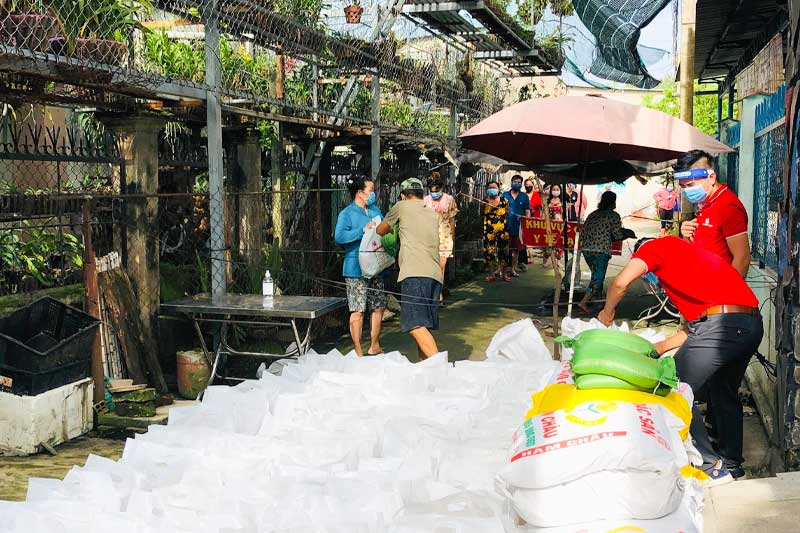 (Trao quà cho bà con vùng phong tỏa)