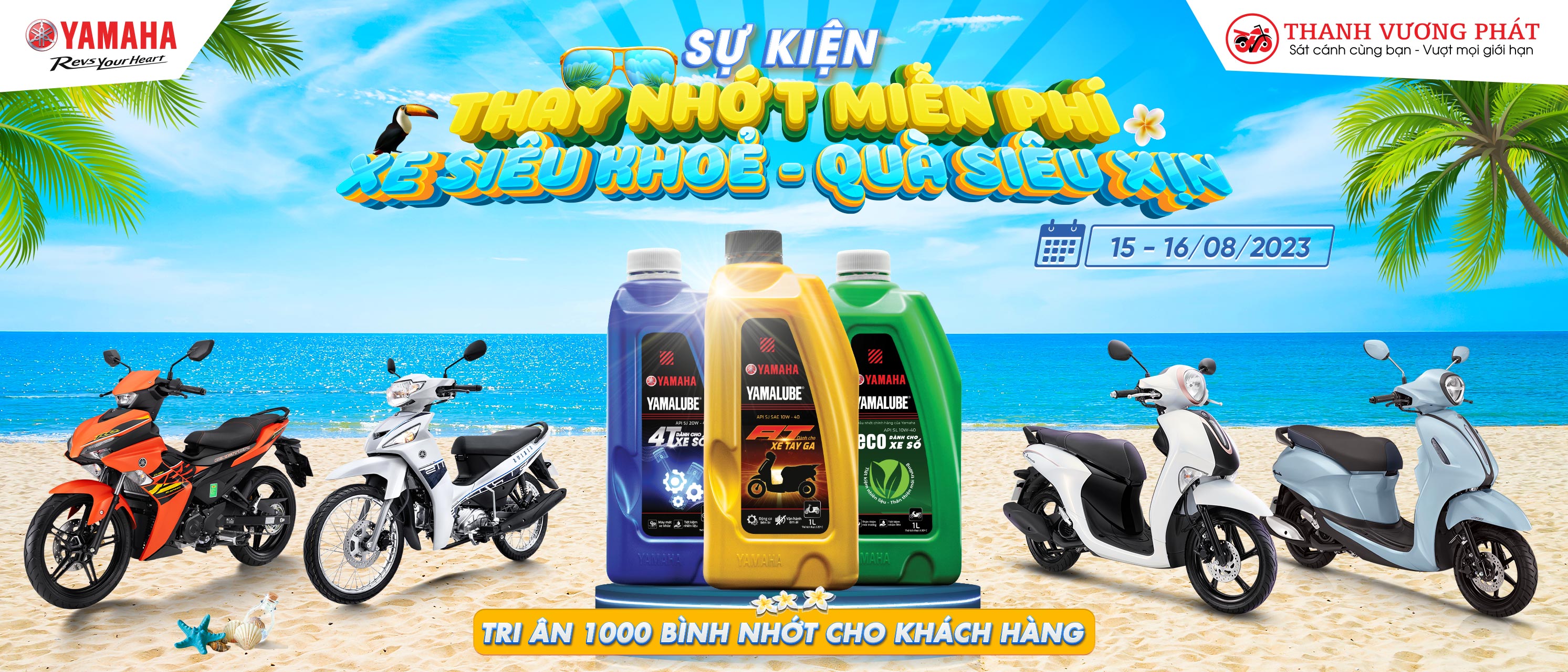 CÔNG TY TNHH MTV THANH VƯƠNG PHÁT XIN THÔNG BÁO SỰ KIỆN THAY NHỚT MIỄN PHÍ "XE SIÊU KHỎE - QUÀ SIÊU XỊN" TRI ÂN 1000 KHÁCH HÀNG ĐANG SỬ DỤNG CÁC DÒNG XE YAMAHA.