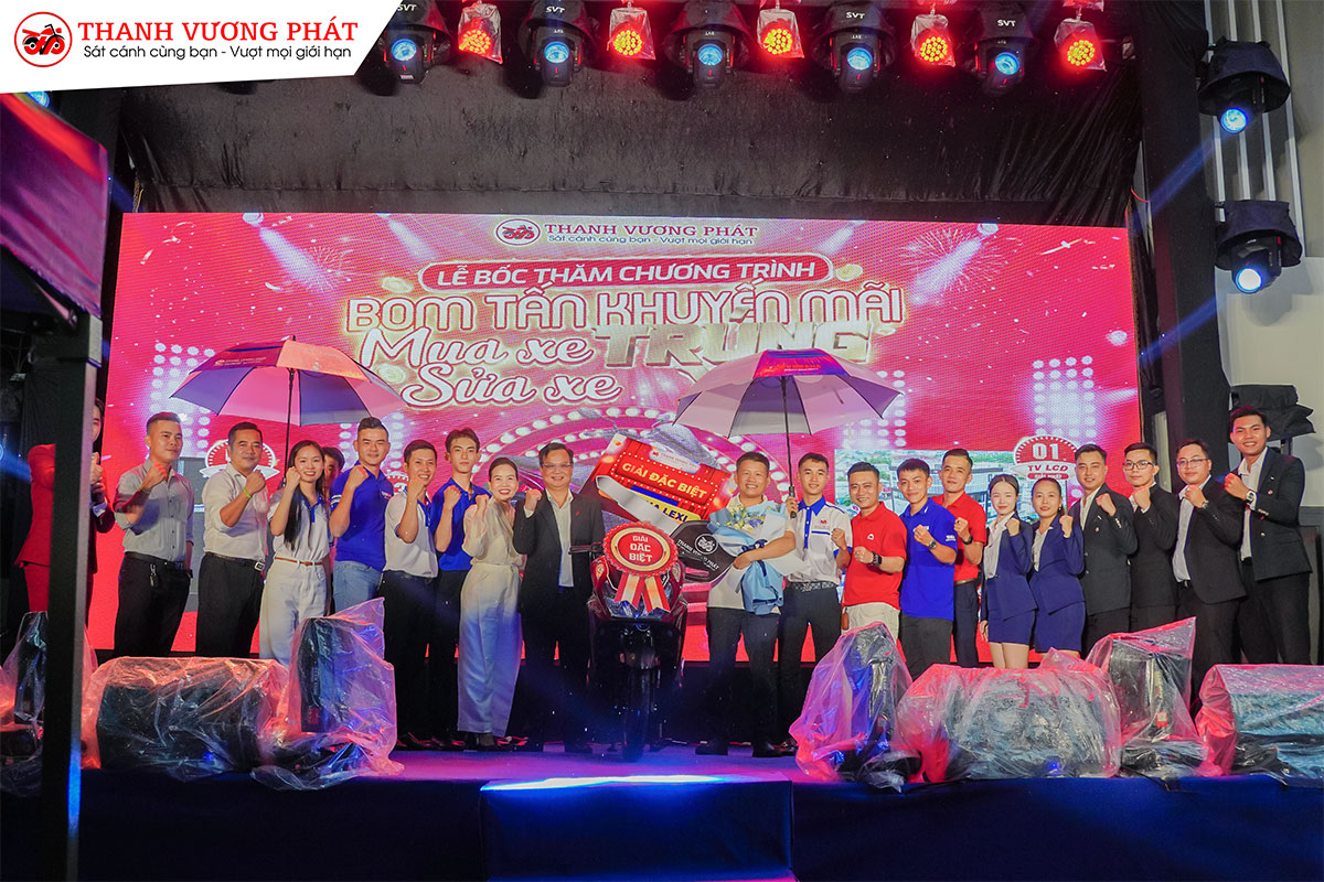 Chiều tối ngày 16/08/2025, tại Yamaha Town Thanh Vương Phát 8, chương trình bốc thăm trúng thưởng với chủ đề “Mua xe trúng xe – Sửa xe trúng xe” đã diễn ra trong không khí vô cùng sôi động và náo nhiệt, thu hút sự tham gia của hàng trăm Khách hàng và các đối tác thân thiết.