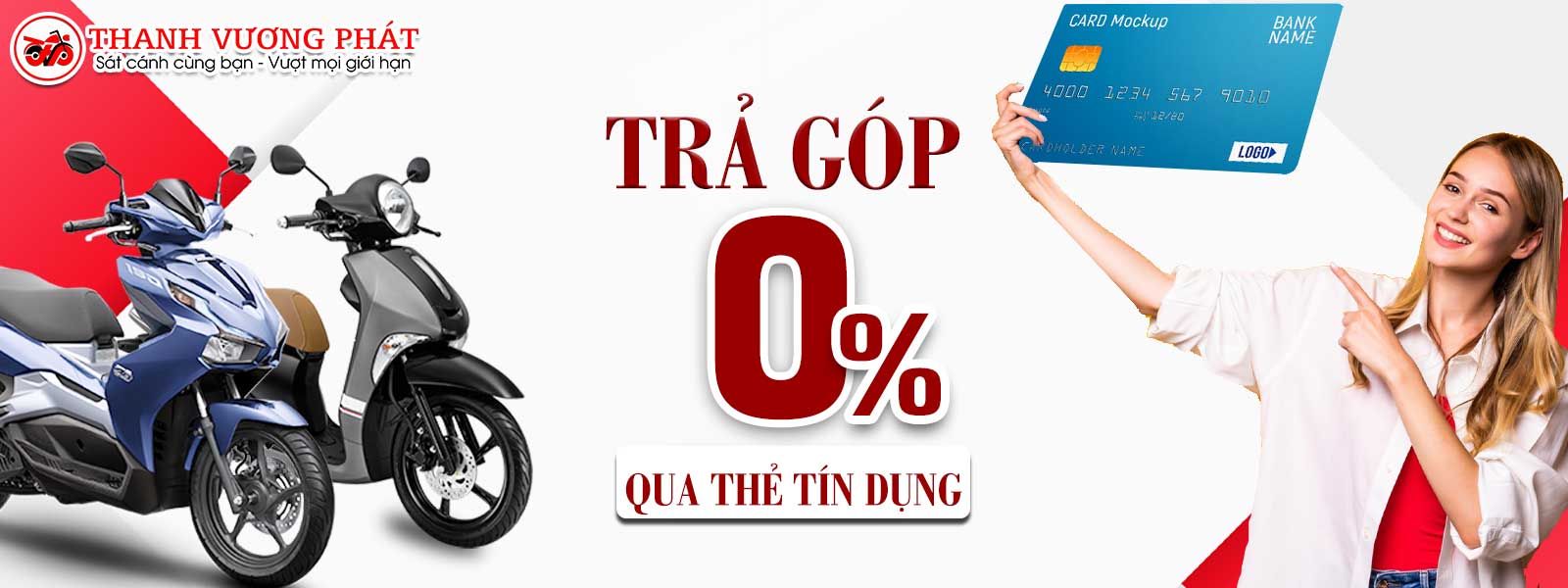 Tận hưởng trả góp lãi suất 0% lãi suất áp dụng cho các sản phẩm xe máy chính hãng khi Khách hàng thực hiện thanh toán trên cửa hàng trực tuyến Honda Thanh Vương Phát bằng thẻ tín dụng.
