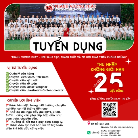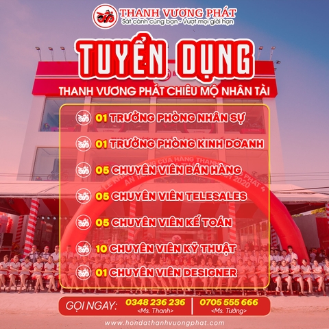 CƠ HỘI VIỆC LÀM THÁNG 07/2024 - CHIÊU MỘ NHÂN TÀI ĐỒNG HÀNH CÙNG THANH VƯƠNG PHÁT