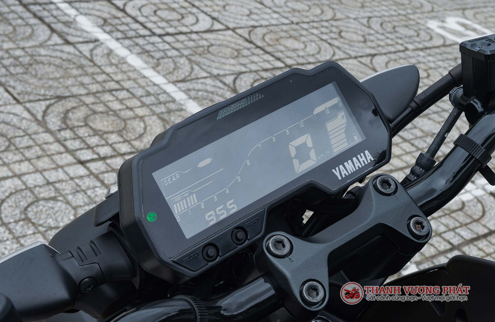 Một trong những điểm nâng cấp đáng tiền trên MT-15 mới đó chính là phần mặt đồng hồ nay là loại LCD âm bản hiển thị đầy đủ thông số hơn, từ vòng tua, tốc độ, mức nhiên liệu, và đặc biệt là phần báo số đã xuất hiện. Đây là chức năng mà nhiều anh em mới tập chơi xe côn tay sẽ cần.